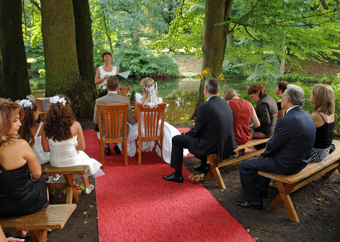 Eine Außenstelle des Standesamtes Bad Sülze befindet sich im Haus. Für die Trauung haben Sie die Wahl zwischen dem „Blauen Salon“, der für Trauungen besonders attraktiven „Bühne unter’m Dach“ oder – bei schönem Wetter– dem romantischen Platz unter dem Blätterdach der großen Hängebuche am kleinen See. (Trauungen sind auch am Samstag möglich!)
